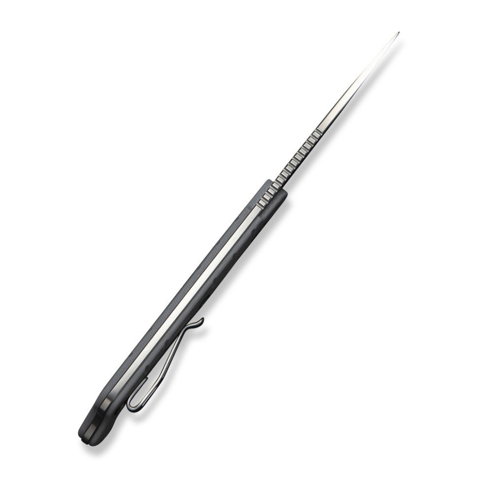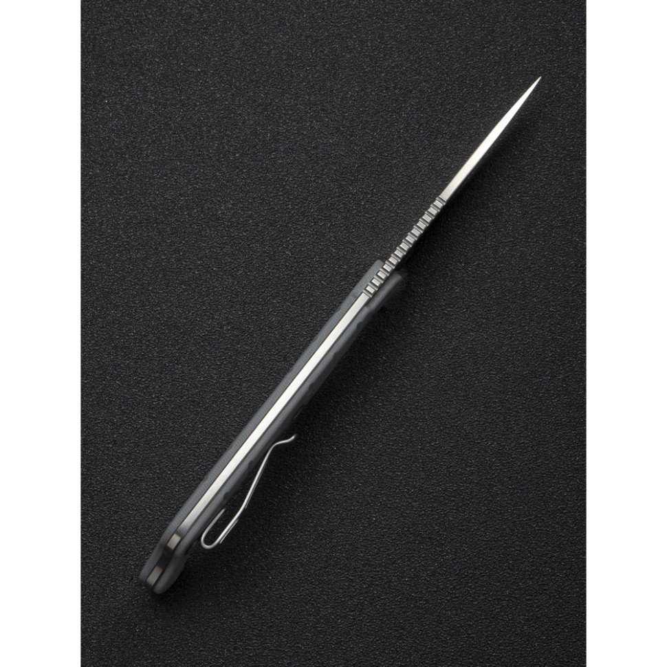 У хвості руківʼя закріплено кліпсу з нержавіючої сталі, орієнтовану на Tip-Down носіння. Затискач забезпечує міцну фіксацію інструмента в кишені або на спорядженні, не виступаючи за межі габаритів. Положення кліпси можна міняти під зручну руку — встановлювати з правого або лівого боку конструкції.