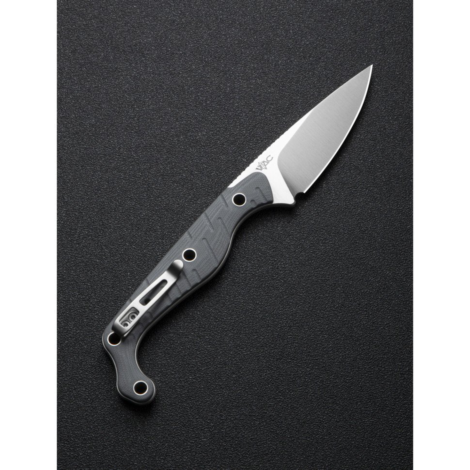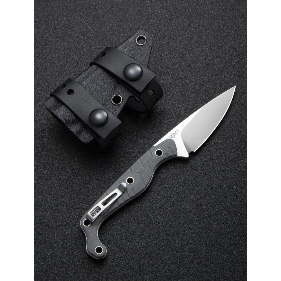 - Накладки G10 по обидва боки руківʼя. Багатошаровий композит стійкий до вологи та зношування, не вбирає воду та зберігає цілісність під час механічних впливів. Скошення по краях забезпечують комфортний хват без тиску на долоню. Наскрізні отвори роблять ніж легшим і дозволяють кріпити його на спорядженні в різних положеннях.