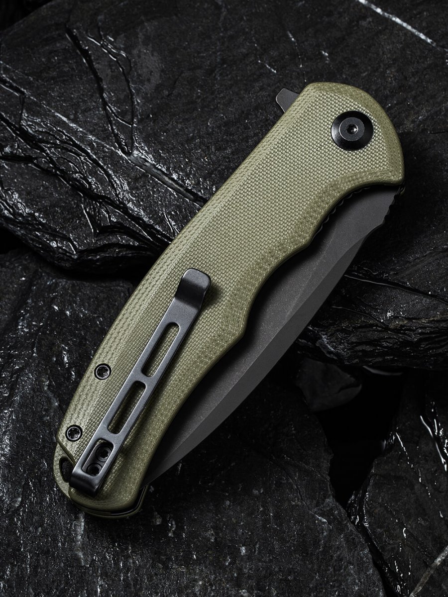 Ручка виготовлена із склотекстоліту G10. Міцний та легкий матеріал із скловолокна та синтетичної смоли. Легка текстура чудово лежить у руці та забезпечує достатнє захоплення. Є кліпса, щоб можна було закріпити інструмент на кишені, прикріпити його до пояса або зафіксувати на рюкзаку.
