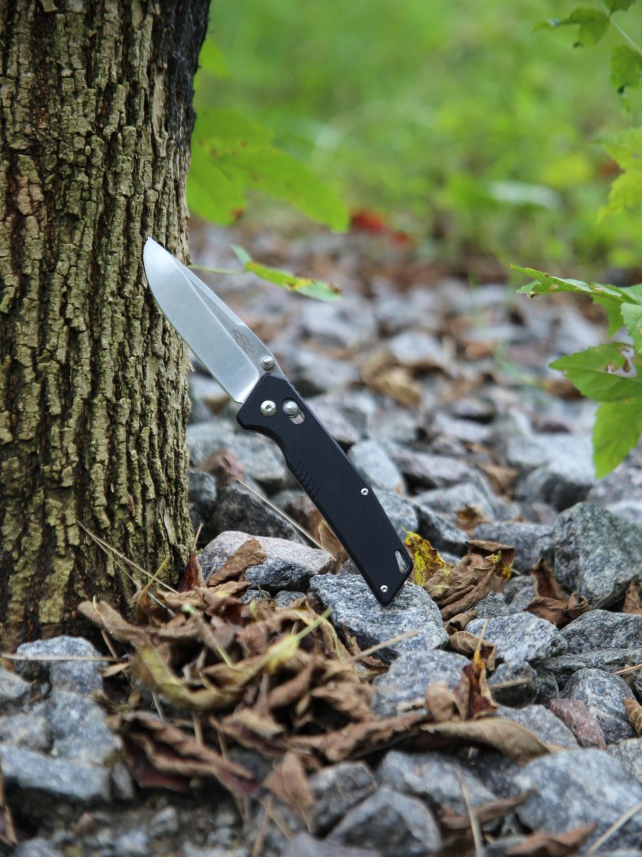 Важливою частиною ножа є вбудований в нього ніж. Конкретно для цієї моделі використовується Axis Lock. Цей замок вбудований в ручку, прикрашену накладками, які являють собою дві пластини з G10. Такий матеріал добре піддається обробці, а тому ручка ножа зручно лежить в руці. А для зручного носіння ножа, на рукоятці є невелика притискна кліпса, становище якої не змінюється.