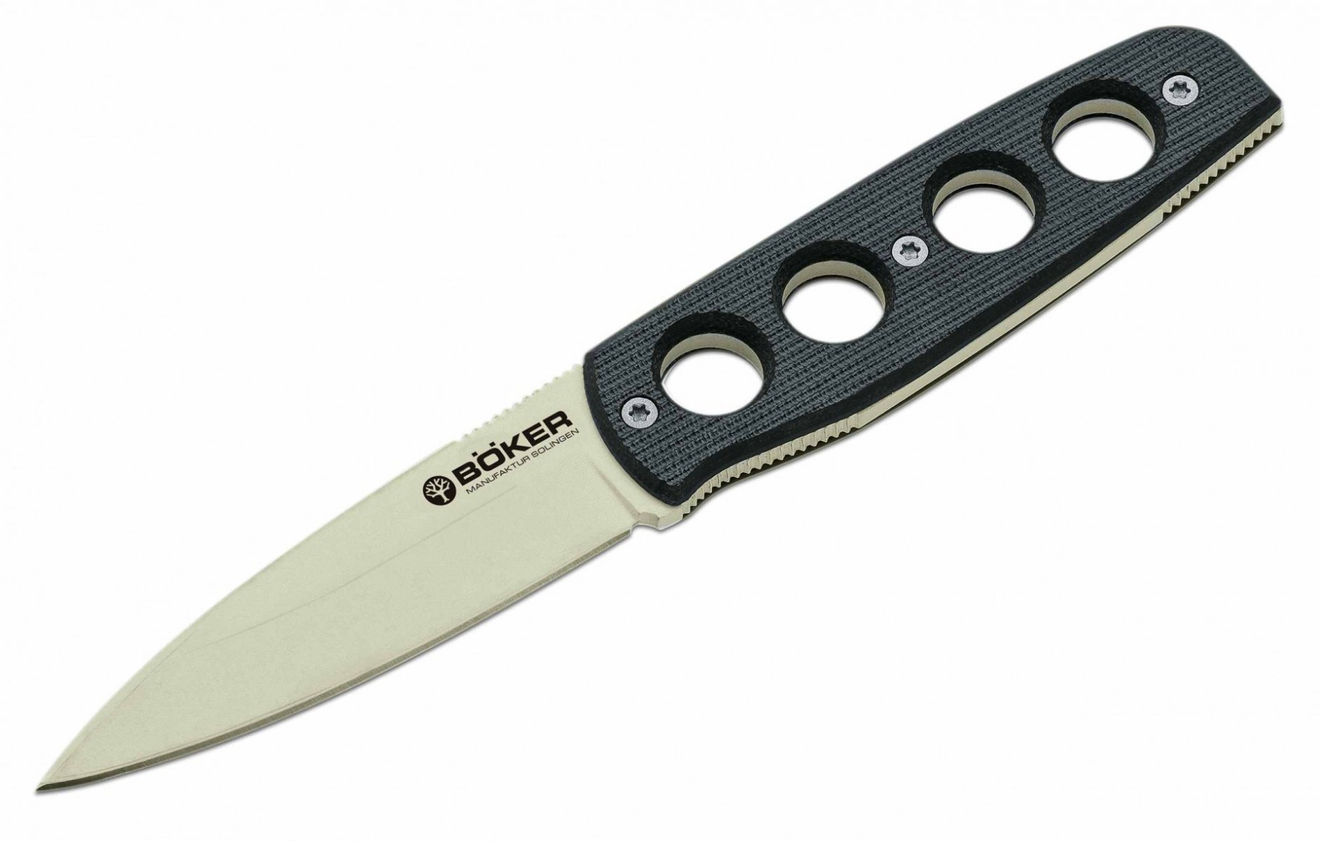 Цей фіксований тактичний ніж авторства дизайнера Бада Нілі має несподівану особливість – на поверхню накладок рукоятки, виготовлених з високоміцного й довговічного склотекстоліту G-10, нанесене спеціальне покриття. Завдяки ньому «підзарядившись» від денного світла, накладки будуть світиться в темний час доби. У такий спосіб Ви ніколи не втратите ніж з виду. Більші отвори на рукоятці суттєво полегшують ніж. Клинок виготовлений із загартованої нержавіючої сталі 440C. Ніж комплектується спеціальними тактичними пластиковими піхвами c кріпленням Tek-Lok