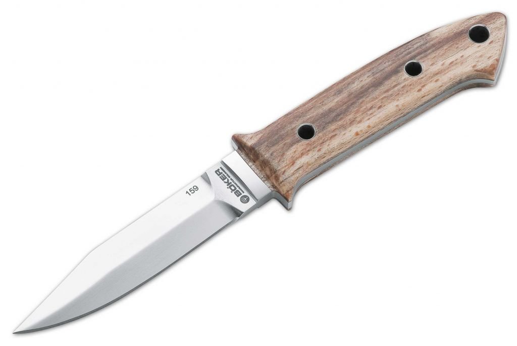 Результатом першого спільного співробітництва компанії Boker і всесвітньо відомого німецького дизайнера ножів Дітмара Креслера став ніж з фіксованим клинком Kressler Integrance. Креслер знаменитий насамперед своїм талантом створювати класичні й зроблені форми ножів, і модель Integrance (Integral & Elegance) ще раз доводить це! Інтегрована в дерев'яну накладку гарда додає ножу особливої харизми, а порожні заклепки, крім своєї прямої функції фіксації, виконують ще й декоративну функцію. Накладки виготовлені з добірного бука під замовлення компанією Novacula®. Для виготовлення клинка використовувалася сталь марки D2, яка відома своєю стійкістю до затуплення. При перенесенні він розташовується в зручних шкіряних піхвах класу преміум. У цілому, Kressler Integrance – це висококласний компактний ніж для щоденного носіння. Ще одним аргументом на користь винятковості цієї моделі є той факт, що кожний ніж вручну підписаний автором.
