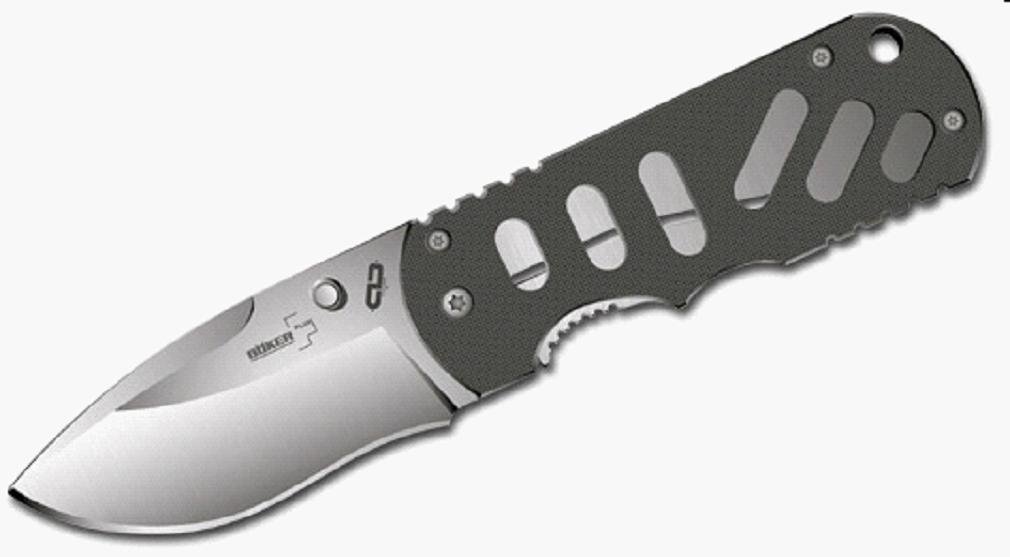 Ще один компактний ніж у модельному ряді Boker Plus від дизайнера Chad Los Banos. З однієї сторони рукояті - накладка з текстоліту G-10 з великою текстурою, вона забезпечує впевенене утримання ножа незважаючи на малі розміри. Зі зворотної сторони – сталева пластина в якій вирізаний замок, надійно замикаючий відкритий клинок (така конструкція називається « фрейм-лок»). Сталеві пластини рукояті, кліпса й клинок з нержавіючої сталі 440С покриті титаном.