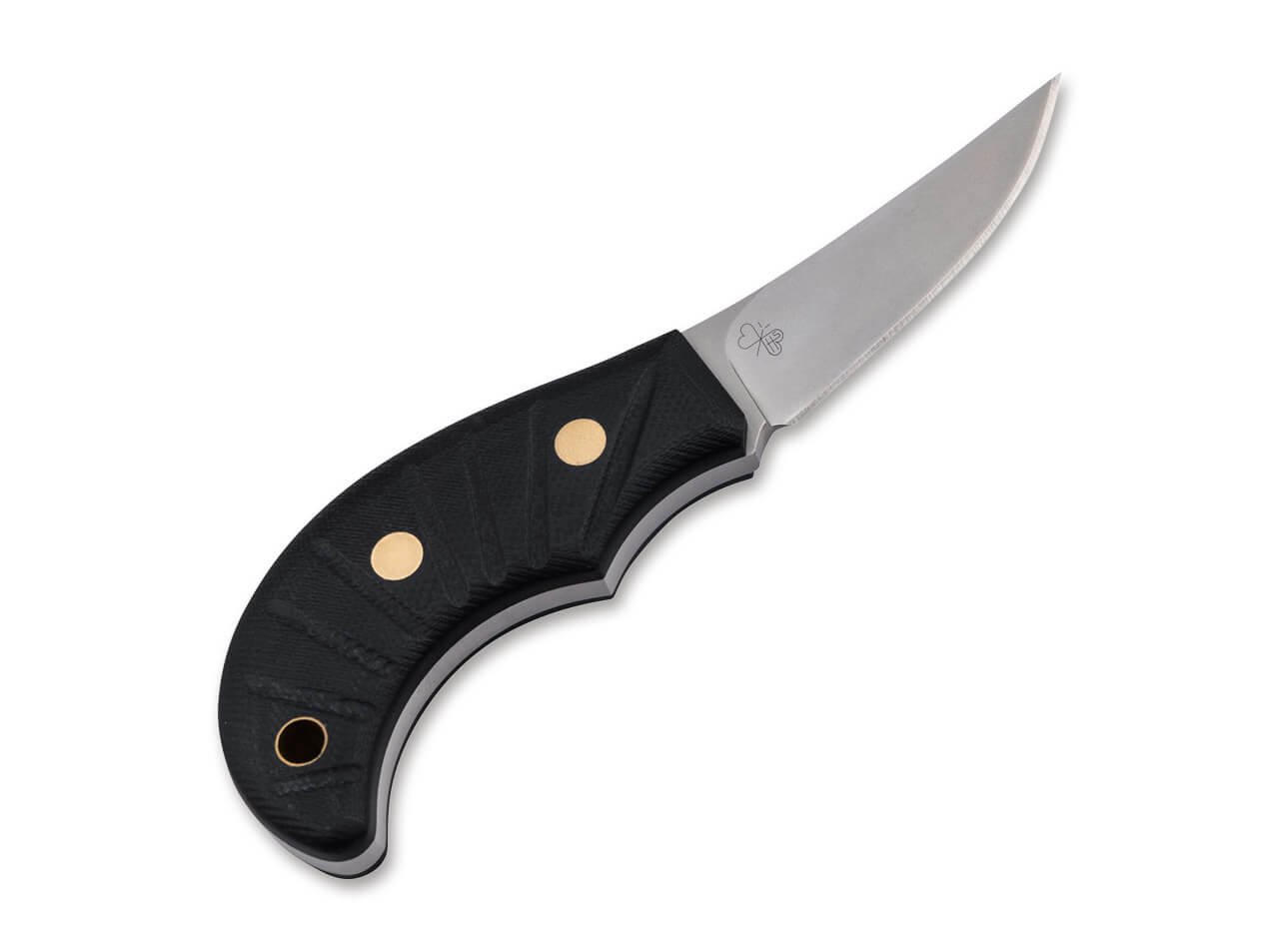 Сині глибини безкрайнього моря надихнули угорського дизайнера Шандора Хег'єша на створення компактного ножа Boker Plus Shrimp. Цей маленький фуллтанг має різальні характеристики, що не поступаються повнорозмірним ножам. Його головна особливість - дизайн у формі креветки, що робить його зручним для виконання дрібних щоденних завдань. Клинок із загнутим догори вістрям виготовлений зі сталі D2 із сатиновою обробкою. Оптимізоване, з точки зору ергономіки, руків'я з накладками з G10 надійно лежить у руці. Декоративні акценти розставляють латунні вставки на руків'ї та отвір для темляка. У комплекті йдуть міцні піхви з Kydex.