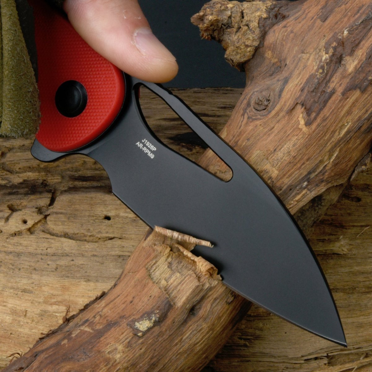 CJRB Lago – це лінійка нових складаних EDC ножів. Простота та надійність – головний принцип моделі Lago. Масивний клинок профілю Drop point виготовлений з фірмової сталі компанії – AR-RPM9 (Artisan-Rare Powdered Material 9 Element Steel), яка має однорідну структуру, що дозволяє зберігати гостру різальну кромку протягом тривалого періоду і відмінно витримує навантаження. На обух клинка нанесені насічки для упору великим пальцем. Відкривається клинок за допомогою фліпера або об'ємного підпальцевого отвору. Фіксується у відкритому положенні замком Button Lock. Клинок може мати обробку Stonewash або захисне, чорне PVD (Physical Vapor Deposition) покриття. Накладки виготовлені зі склотекстоліту G10 різних кольорів. На торці розміщений отвір для темляка та двостороння кишенькова кліпса.