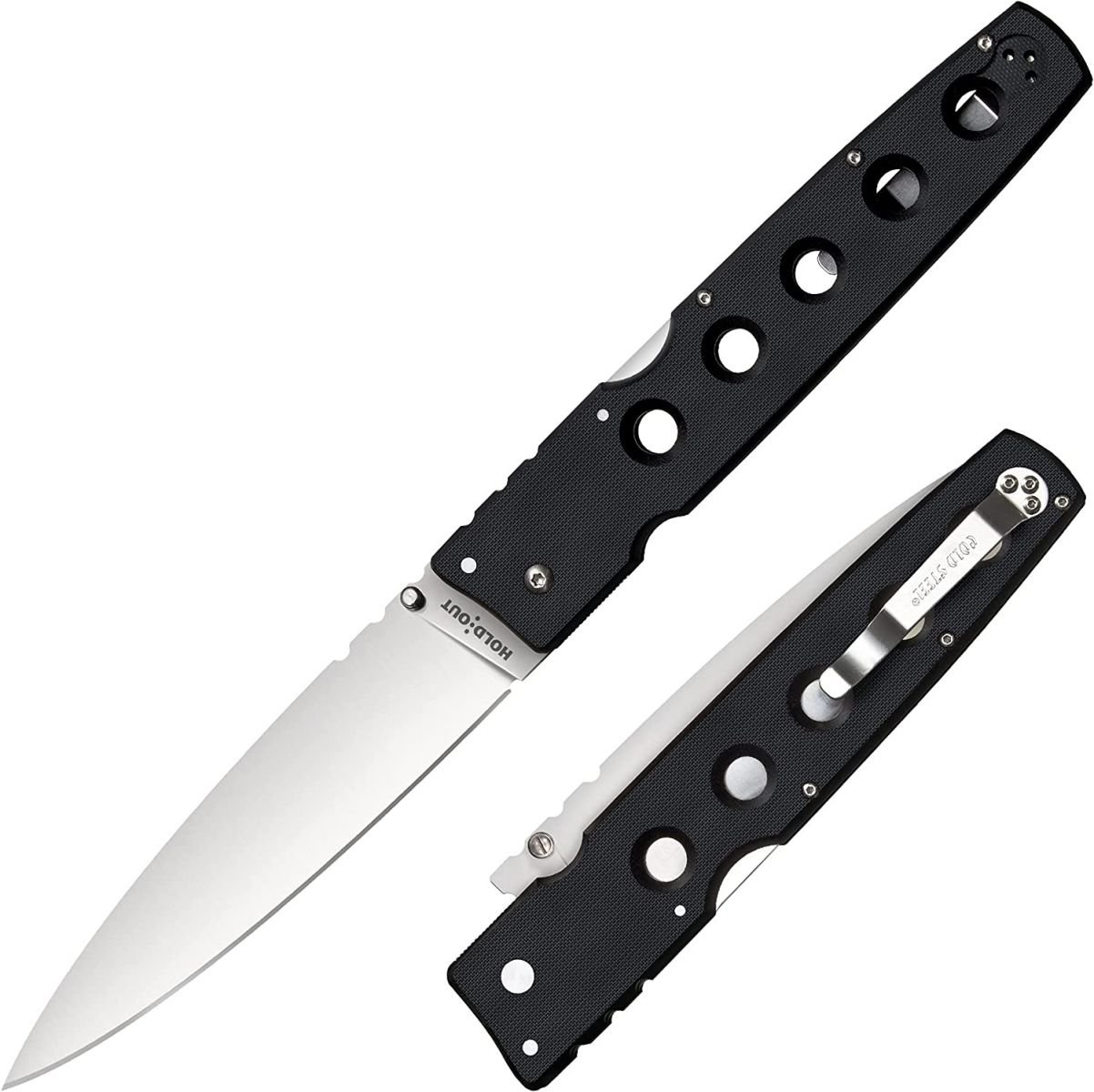 За основу моделі взята зброя шотландських воїнів античності – Скін Ду, допоміжний ніж, який переносився потай під одягом, у рукаві або взутті. У зв'язку із цим ніж був компактним, легеням і тонким, щоб не створювати дискомфорт у русі. Сьогодні Cold Steel пропонує сучасну інтерпретацію цієї прадавньої зброї – тактичний складаний ніж Hold Out. Модель має надзвичайно тонкий голчастий клинок, який, однак, має чудові ріжучі й проникаючі здатності. До того ж, при такій мініатюрності, виготовлений зі сталі S35VN, клинок залишається надзвичайно міцним і гнучким. Завдяки ультра-міцному замку запирання TRI-AD® Lock клинок самим надійним образом фіксується у відкритому положенні.