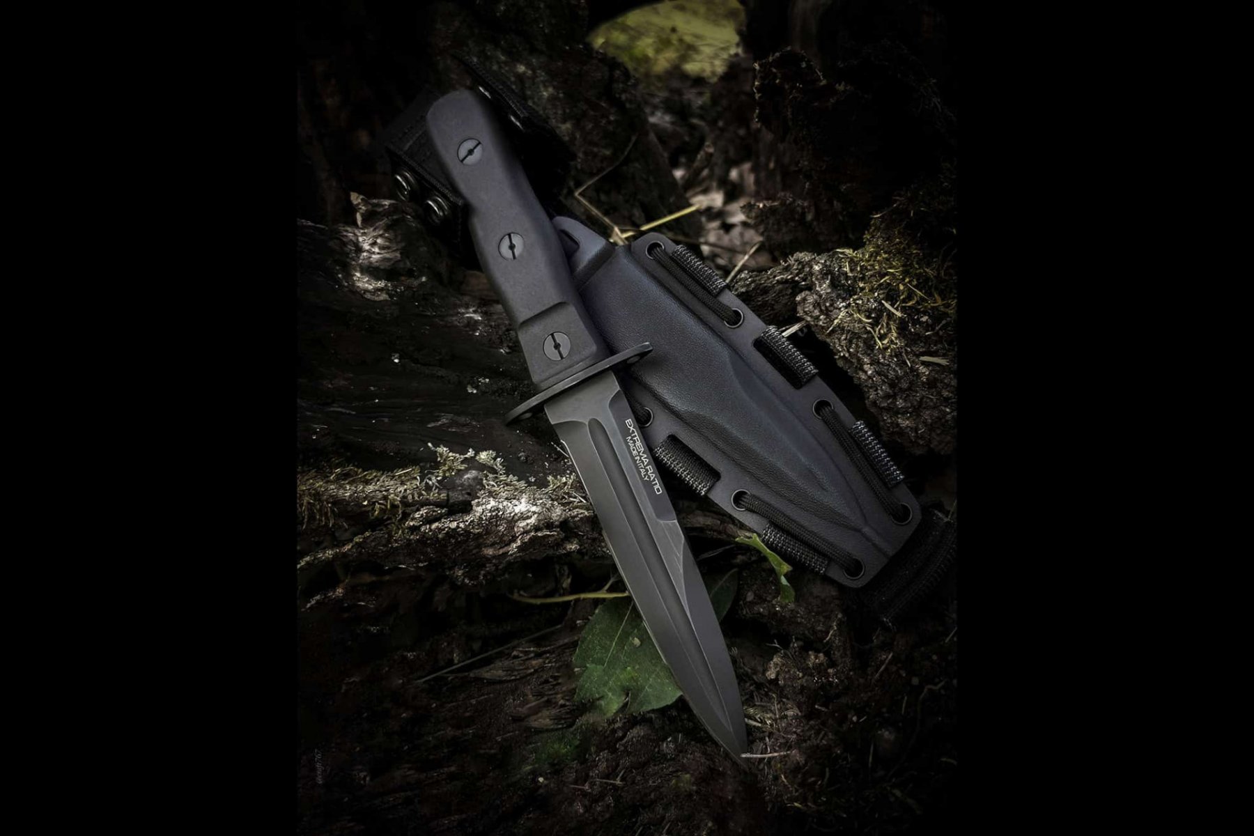 У комплекті йдуть зручні та міцні піхви з кайдексу з широким вибором варіантів кріплення до спорядження.