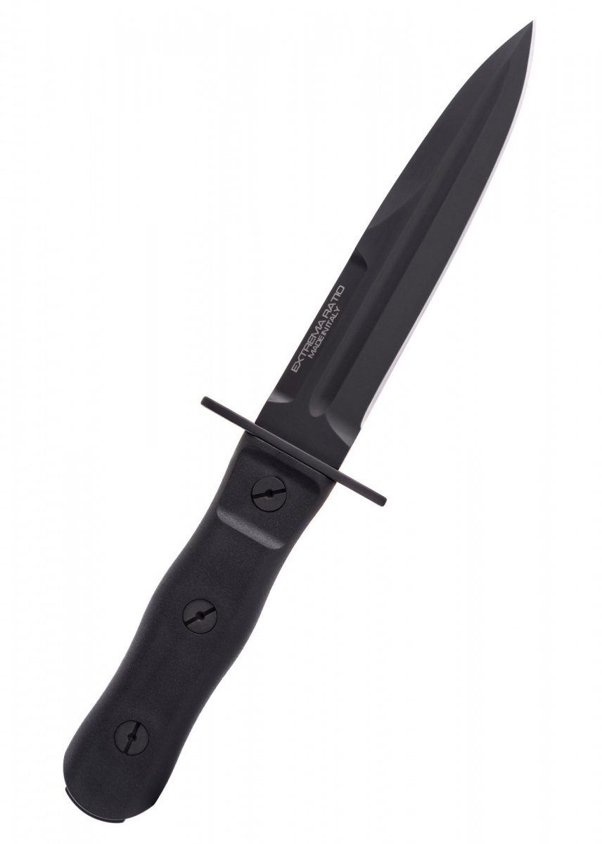Особливу увагу дизайнери приділили розмірам та формфактору клинка. Профіль Spear Point відрізняється компактністю, а розміщений по обидва боки дол і декоративні вибірки на обусі дозволили зменшити його вагу, не втрачаючи продуктивності. Клинок виготовлений із легованої австрійської сталі марки Böhler N690, яку загартували до 58 HRC. Для додаткового захисту від корозії, ножові майстри Extrema Ratio використовували покриття Black Oxide MIL-C-13924. Масивна двостороння гарда служить для захисту рук під час інтенсивних навантажень.