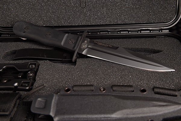 У комплекті йдуть зручні та міцні піхви з кайдексу з широким вибором варіантів кріплення до спорядження.