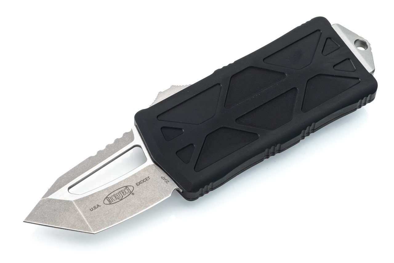 Новинка 2019 року – серія компактних автоматичних edc-ножів із фронтальним викидом клинка Microtech Exocet. Модель розроблена спеціально для людей, мешкають на території, де за законом заборонено носити із собою ніж із клинком довжиною більш 5 см. Зокрема, для жителів і гостей Каліфорнії, США. Залежно від виконання ножа, можуть відрізнятися колір і обробка клинка й фурнітури. Якість завжди залишається незмінно високим. Рукоять традиційно виконана з алюмінієвого сплаву 6061 T6. Зручна, широка кишенькова кліпса дозволяє використовувати ніж як затиск для грошей.