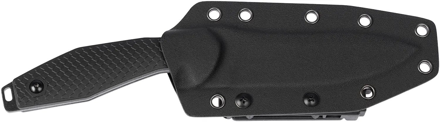Цільнотягнута конструкція (full-tang) забезпечує високу міцність при серйозних навантаженнях. Руків’я з текстурованого TRP дає впевнений хват за будь-яких умов, а Kydex-ножни гарантують швидку та надійну фіксацію під час носіння.