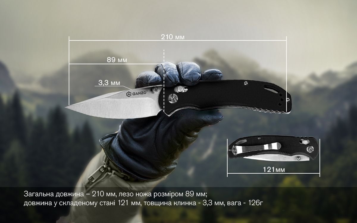 Лезо Ganzo 7531 утримується за рахунок замку Axis у відкритому або складеному положенні. Цей фіксатор на базі металевого штифта істотно підвищує рівень безпеки користувача під час роботи з ножем.