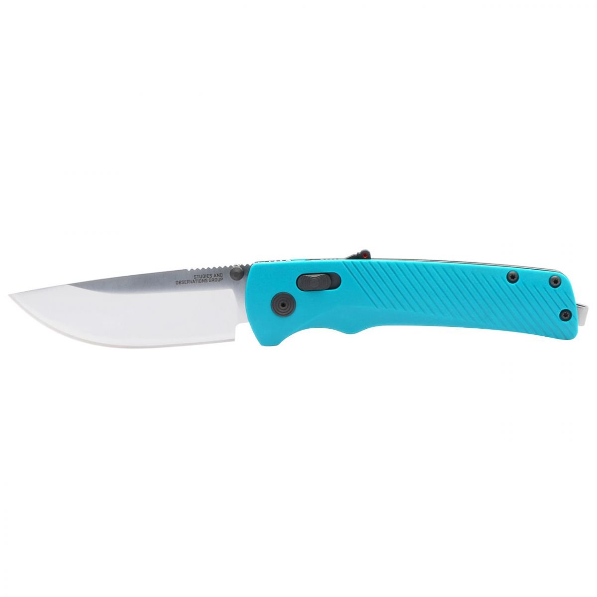 Клинок з прямим обухом виготовлений зі сталі марки D2 з кріогенною обробкою, що збільшує стійкість до зносу. Клинок може мати фінішне покриття із нітриду титану чорного кольору, яке захищає сталь від пошкоджень або сатиновий фініш. Підпружинений клинок витягується за допомогою шпеника і надійно фіксується в робочому положенні двостороннім замком AT-XR. Дизайн замка перешкоджає випадковому відкриттю.