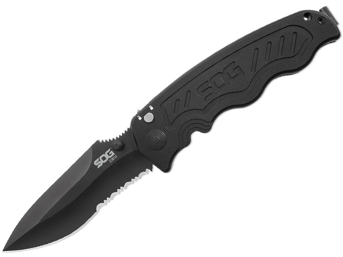 SOG Zoom – серія легких компактних складних ножів. У виробництві клинків різних моделей використані високоякісні нержавіючі сталі AUS-8 і S30V. Завдяки технології прискореного відкривання ножа (SOG ASSISTED TECHNOLOGYTM) Zoom легко приводиться в робоче положення однієї рукою. Реалізована зручна й проста система фіксації клинка - button-lock. Рукоять виконана з алюмінію. Є отвір під темляк.