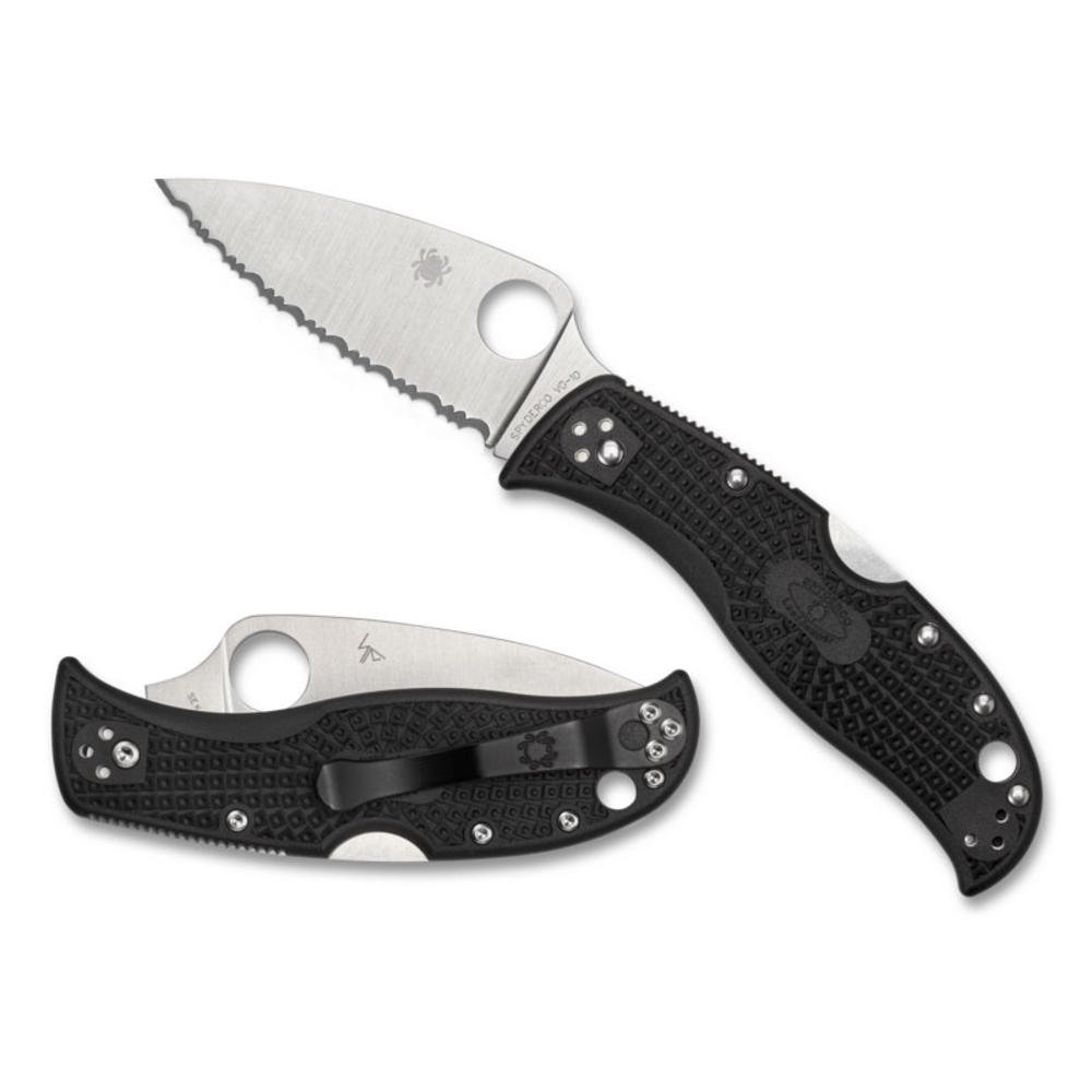 Ніж Spyderco Leafjumper - це компактний і легкий складаний ніж, розроблений спеціально для любителів активного відпочинку і для щоденних завдань. Співзасновник компанії Spyderco Сел Глессер розробив ніж RockJumper і ґрунтуючись на успіху цієї моделі, Сел створив LeafJumper. Модель LeafJumper оснащена клинком з високоякісної сталі VG-10 з твердістю 61 HRC. Накладки на руків'ї виконані з міцного матеріалу FRN. Конструкція ножа також містить легкий і надійний замок Back Lock, який забезпечує безпеку під час використання. На торці розміщена чотирипозиційна кліпса.