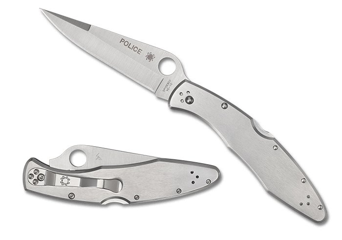 Одним із самих знаменитих ножів Spyderco стала модель Police, виробництво якого почалося в 1984 році. Як випливає из його назви, цей ніж призначав для екіпірування патрульних поліцейських і бійців силових структур і тому тривалий час у вільний продаж не надходив. Клинок ножа виготовляється з японської корозії стійкої сталі VG-10 (V-Gold №10), має тверді рамки нормування змісту легуючих елементів у своєму складі. Клинки зі сталі цією марки відрізняються стабільністю властивостей, виходять у результаті термообробки. (Ця сталь використовується для клинків більшості інших сучасних моделей ножів Spyderco).