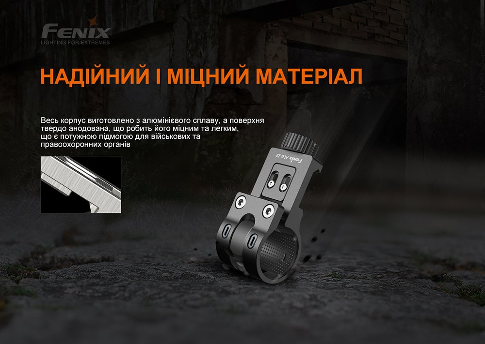 Комплектація: тактичне кріплення Fenix ALG-15, шестигранний ключ.