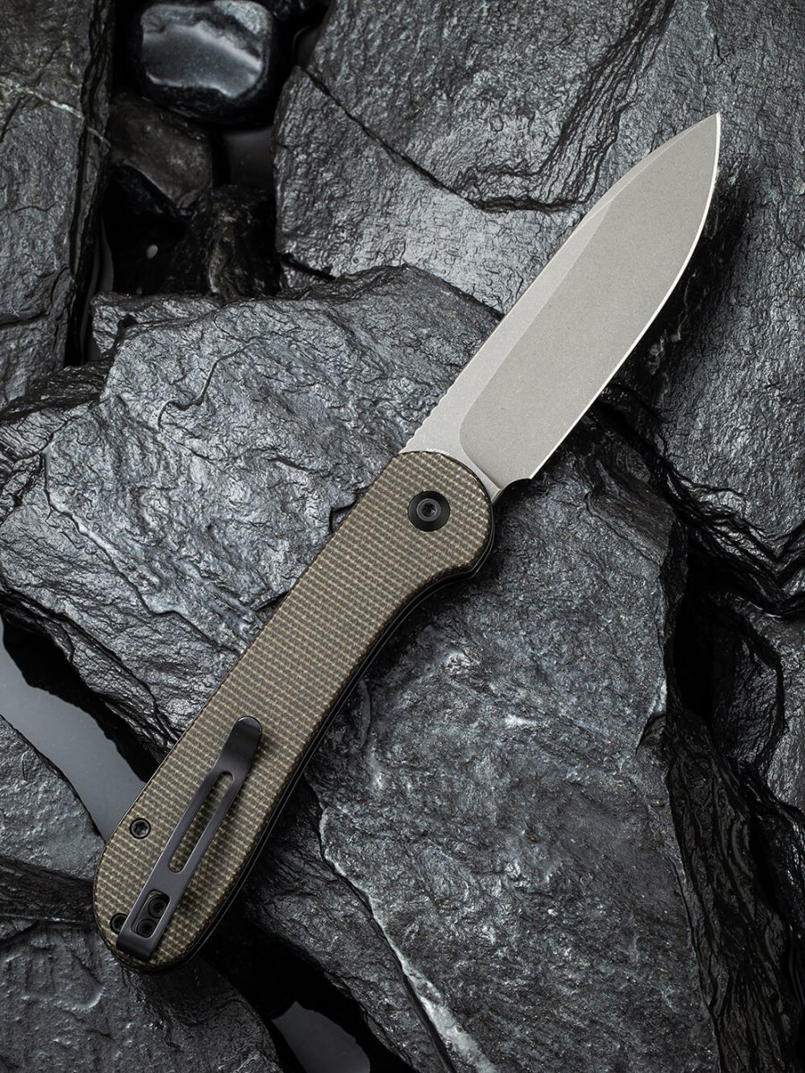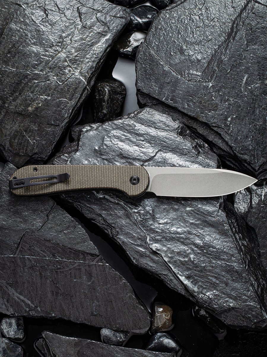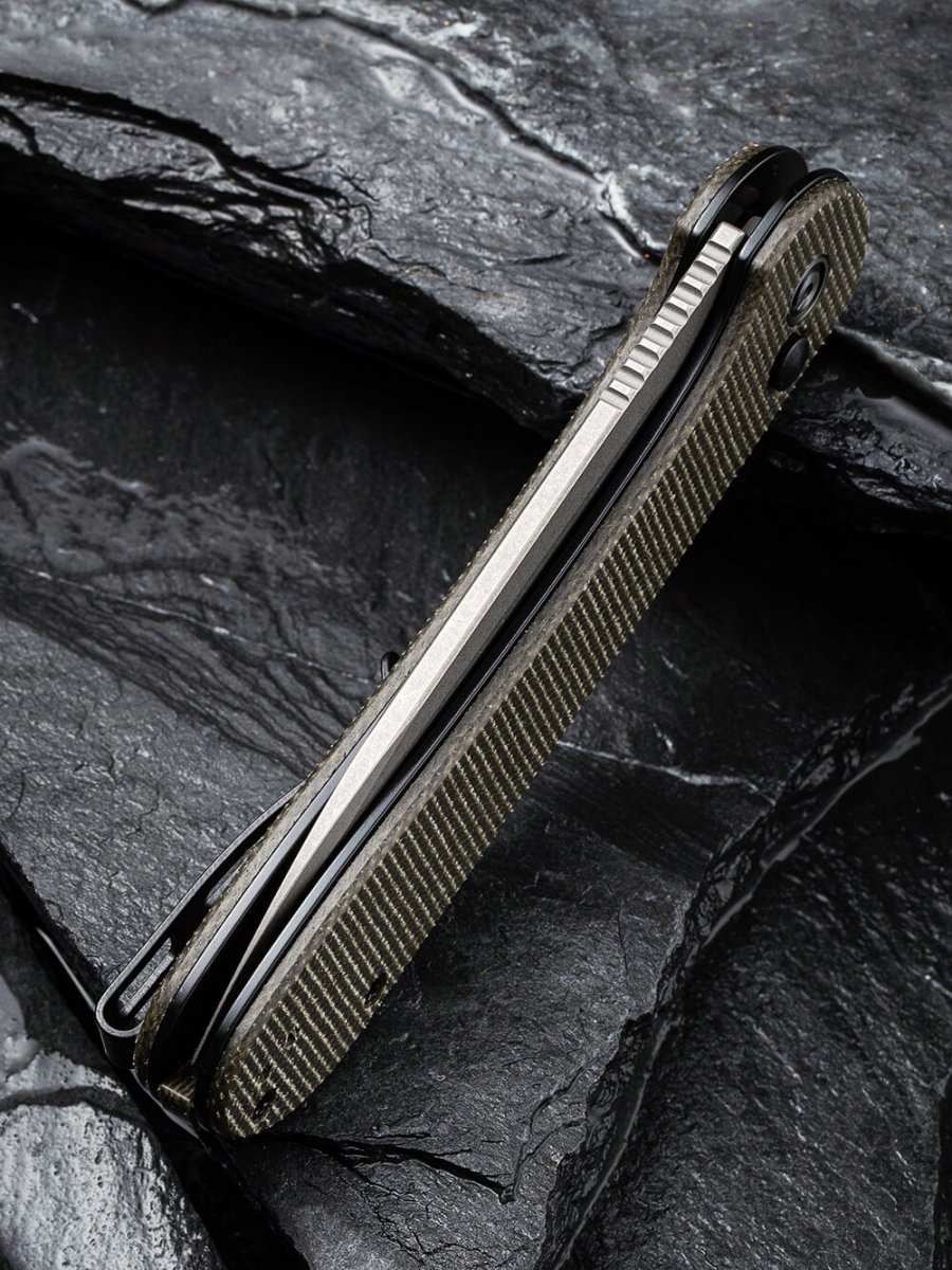 Рукоятка зроблена із застосуванням мікарти. Композитний матеріал із льону та синтетичної смоли. Він виглядає чудово і забезпечує достатнє зчеплення. Кулькові підшипники. Довжина повного ножа досягає 21,3 сантиметра, в закритому положенні довжина становить 11,5 сантиметра. Довжина леза: 8,9 сантиметра, а товщина дорівнює трьом міліметрам. Важить модель 95 грам.