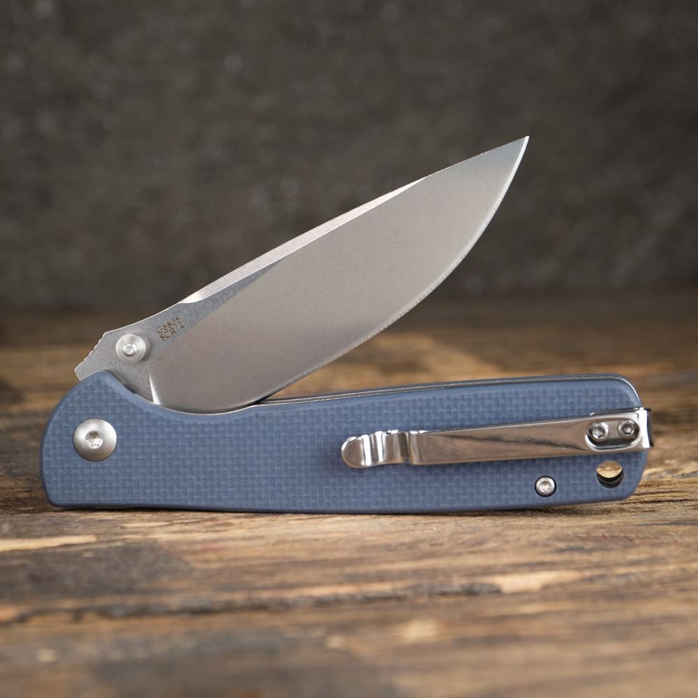 Виробник потурбувався про ергономіку ножа і доповнив його рукоять склотекстолітовими (G10) накладками сірого кольору. Вони кріпляться на конструкції за допомогою пари гвинтів і мають шорстку поверхню, щоб модель не вислизала з руки під час використання. Довжина рукояті становить 112 міліметрів і підходить власникам долоні будь-якого розміру.
