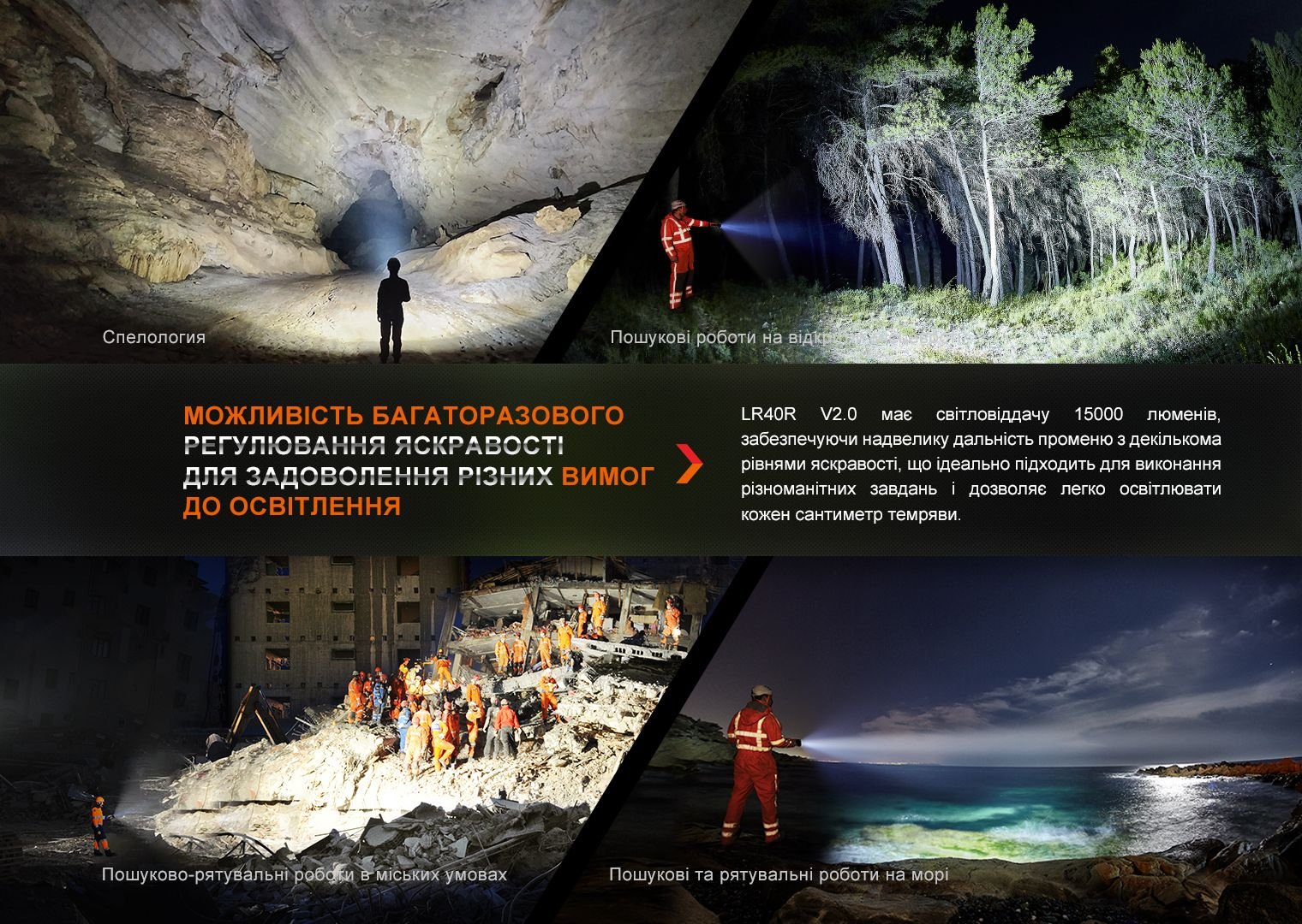 Опис ручного ліхтаря Fenix LR40R V2.0: