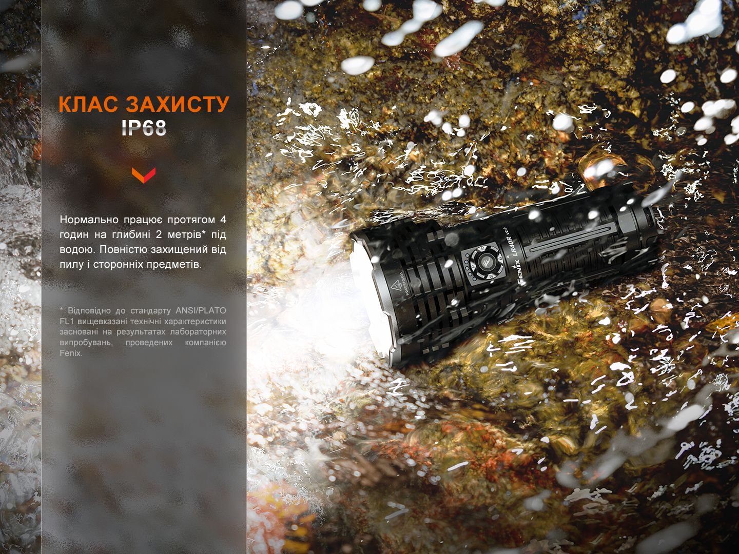 Ліхтар захищений від вологи та засмічень згідно з найвищим класом IP68, тому може працювати навіть на глибині 2 метри протягом 4-х годин. Конструкція також несприйнятлива до температурних перепадів від -35°C до 45°C.