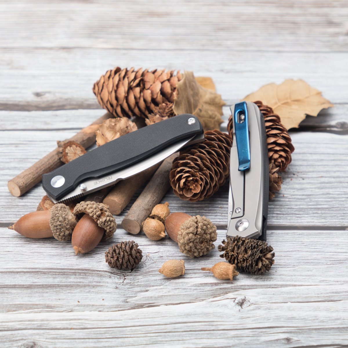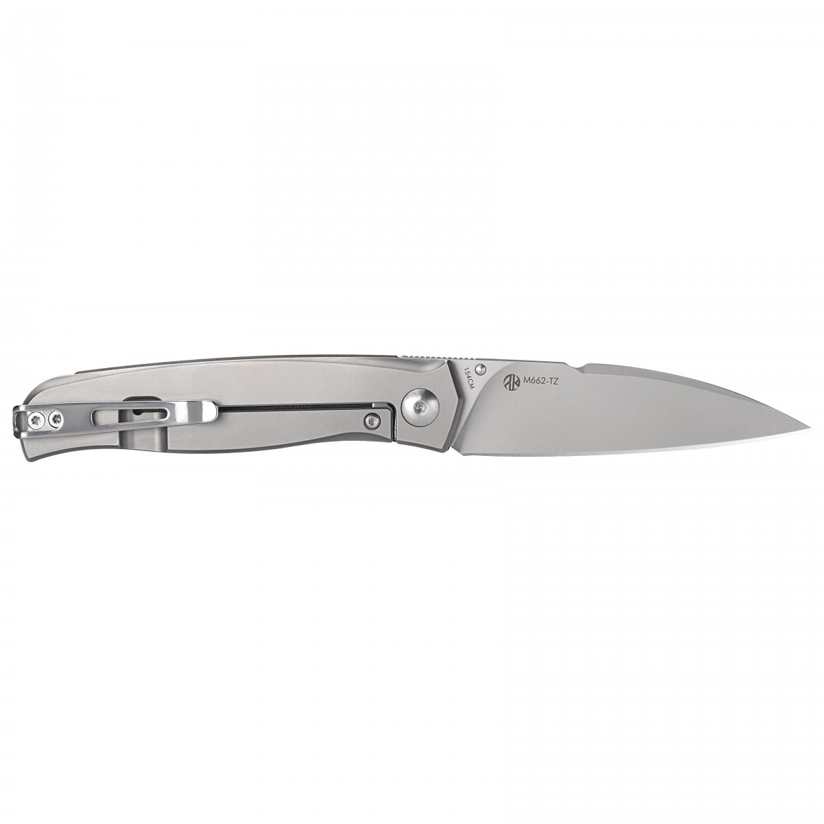 Клинок Ruike M662-TZ має незвичайну форму wharncliffe, що підходить для акуратних розрізів. Твердість сталі дорівнює значенню 58-60 HRC, і з урахуванням товщини леза 3.5 мм, це дає ножу можливість витримувати підвищені навантаження. Довжина клинка складає 74 мм. Оздоблення Bead Blasted надає сталі матовість, яка приховує невеликі подряпини на поверхні.