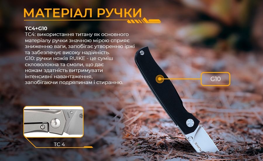 - комбіноване руків’я – титан ТС4 та композит G10;