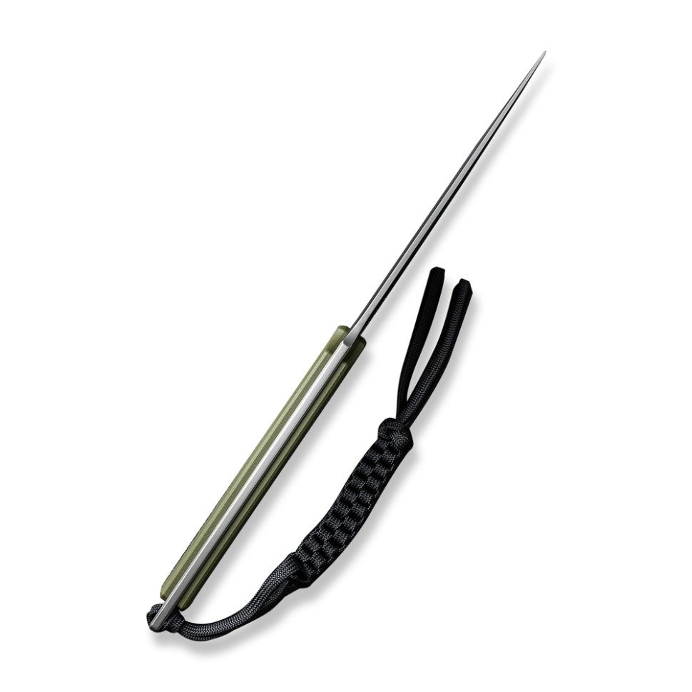 Крім ножа вагою 200.9 грамів комплект постачання включає темляк з переплетеного паракорду та піхви з кайдекса. Дизайнер Боб Терзуола (Bob Terzuola) спроектував затискач у піхвах, який забезпечує гранично щільну та надійну фіксацію на поясі.