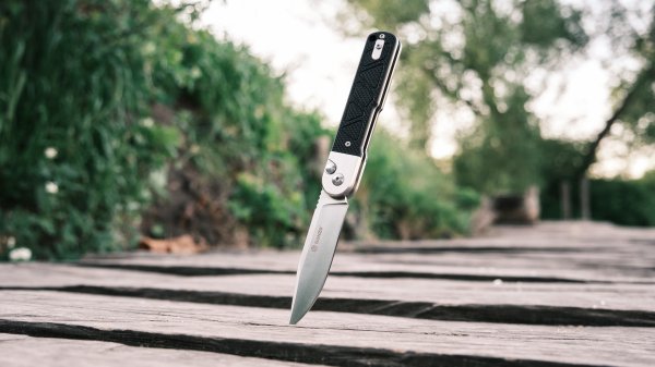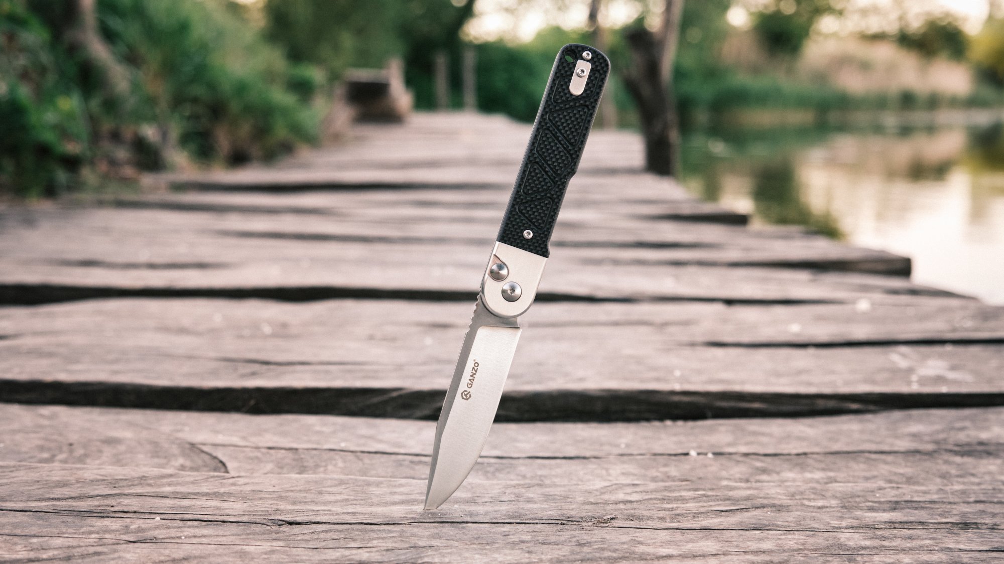 Матеріал клинка — сталь 9CR14, яка рідко зустрічається у складаних інструментах Ganzo. Це нержавіюча марка з високим вмістом хрому та допоміжними легувальними елементами у вигляді молібдену та ванадію, що знижують крихкість та підвищують щільність металу. Твердість сталі дорівнює еталонним 59 HRC, тому клинок ефективно справляється з різанням матеріалів різної щільності.