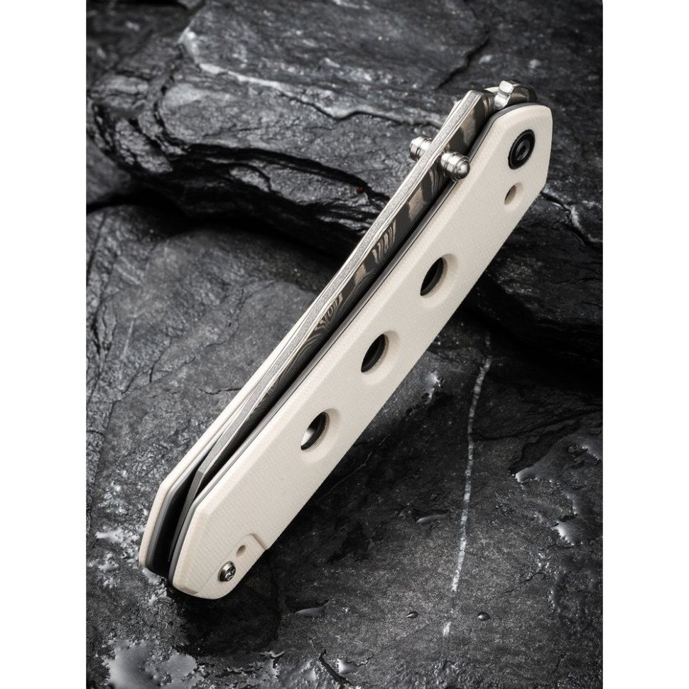 Руківʼя моделі доповнюють накладки зі склопластику G10. Вони мають шорстку поверхню, що покращує утримання конструкції під час експлуатації. Ряд отворів у накладках знижують загальну вагу ножа до 123.4 г, що з урахуванням наявності кишенькового затискача з нержавіючої сталі дозволяє носити інструмент з собою на постійній основі.