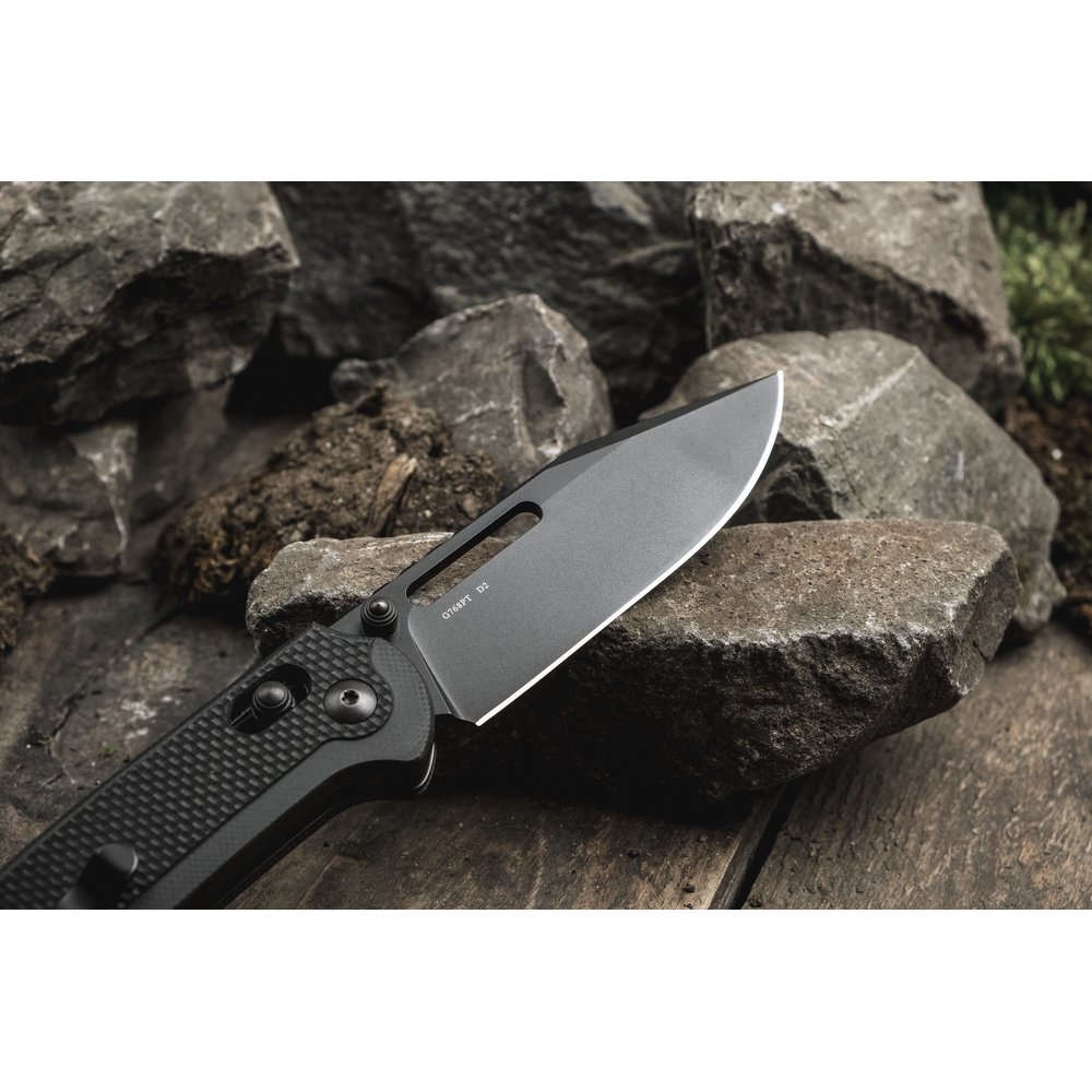 - Сталь D2 в клинку легко заточується та надовго зберігає гостроту, дозволяючи мінімізувати частоту обробки леза. Товщина клинка в обуху сягає 3 мм, роблячи ніж несприйнятливим до деформування та пошкоджень.