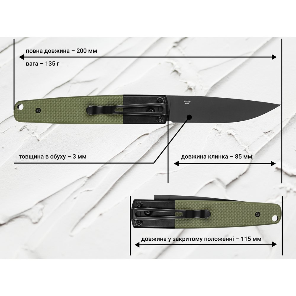 - матеріал руківʼя – нержавіюча сталь + склопластик G10;
