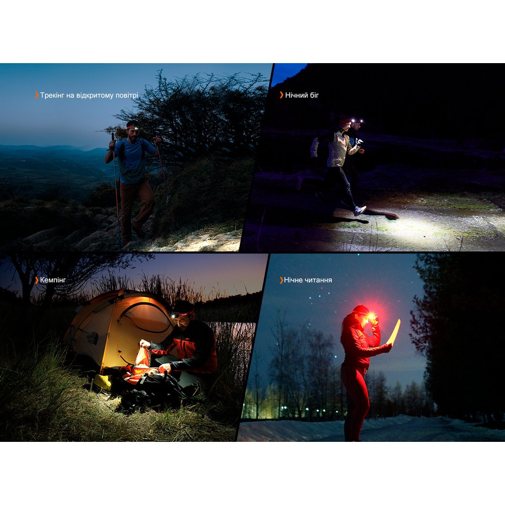 - налобний ліхтар для бігових тренувань та активного відпочинку;
