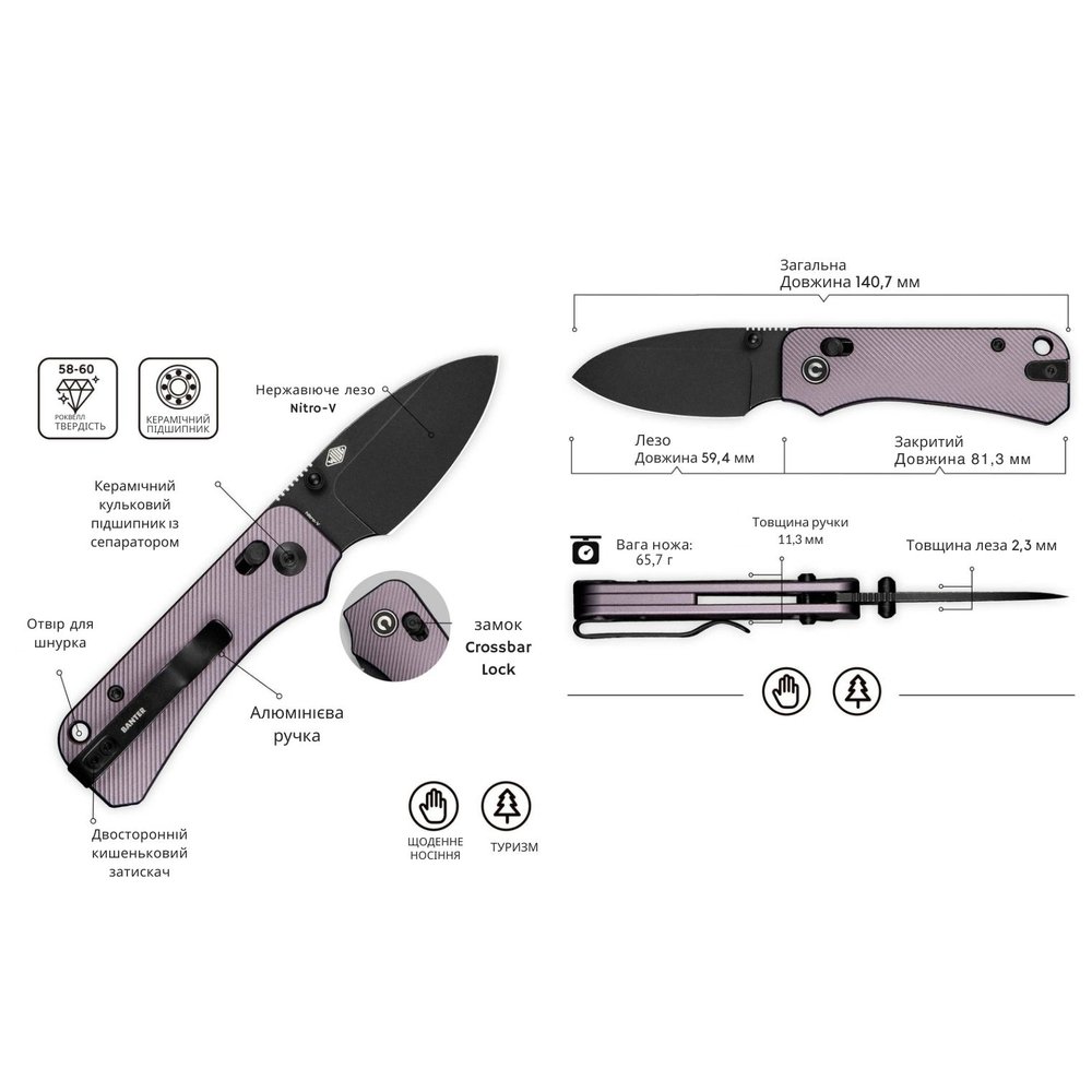 - Вид ножа: кишеньковий, туристичний