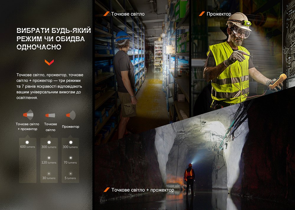 Близький + Далекий, Turbo. Світловий потік досягає 600 люменів, час роботи – 3 години та 49 хвилин. Дистанція променя – 100 метрів, інтенсивність потоку – 2280 кандел.