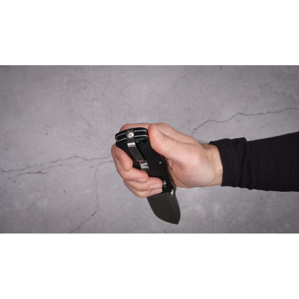 В даній моделі встановлений замок Axis. Це замок штифтового типу, в якому клинок фіксується за допомогою підпружиненого металевого штифта. Користуватися замком Axis однаково зручно будь-якою рукою. А його перевага в тому, що ніж з замком Axis не може спрацювати випадковим чином. Єдина умова для справності замку — необхідно підтримувати його в чистоті.