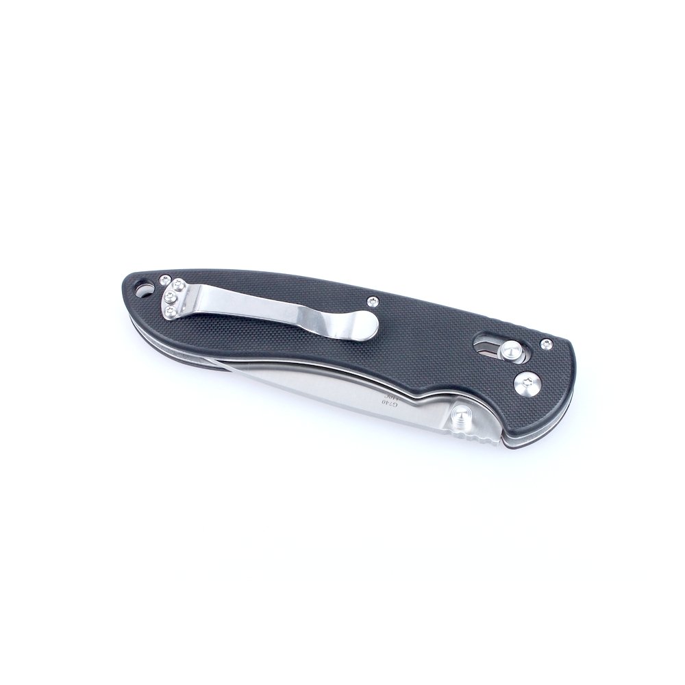 Ніж Ganzo G740 відрізняється від інших моделей досить значними розмірами. Але завдяки складаний конструкції, його все так само легко взяти з собою на поїздку на природу і використовувати як для стандартних робіт, так і для найбільш складних. Лезо ножа виконано з високоякісної твердої і нержавіючої сталі 440С.цей сплав відмінно збалансований щодо корозійної стійкості і твердості металу. Тому ніж не потребує особливо складного догляду: не іржавіє на риболовлі або в туристичному поході, довго залишається гострим навіть при постійному використанні. Довжина леза в даній моделі становить 9,5 см. воно рівно і гладко заточене по всій довжині. Товщина клинка теж трохи більше, ніж зазвичай пропонує компанія Ganzo і становить 3.5 мм.цим потужним клинком можна з легкістю обробити м'ясо, перерізати невеликі гілки, заготовити стружки для розпалювання багаття. При цьому, модель Ganzo G740 повністю відповідає нормам, які дозволяють говорити, що цей ніж не є зброєю і дозволений до використання широким колом людей.