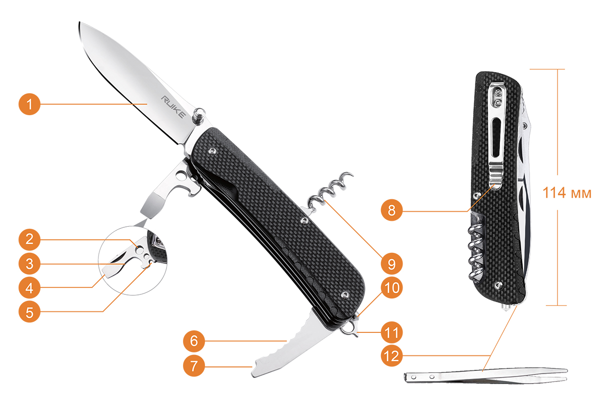 Ruike LD-21 відноситься до числа кишенькових багатофункціональних ножів, які іноді називають швейцарськими. Крім, власне, ножа, ця модель має ще безліччю додаткових інструментів, а тому може використовуватися в самих різних ситуаціях. Цей ніж не даремно так популярний серед туристів і всіх, кому подобається проводити своє дозвілля на природі.