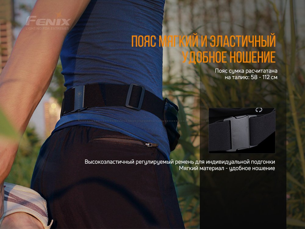 Під відомим брендом Fenix, що виробляють освітлювальні прилади, була випущена новинка. Це стильний аксесуар, поясна сумка Fenix AFB-10. Модель допоможе зробити ваш активний відпочинок ще більш приємним і зручним. Це ультратонкі виріб, відмінно пропускає повітря і при цьому стійко до вологи. Володіє світловим логотипом для більшої безпеки. У темний час доби ви отримаєте впевненість і захищеність. Модель має складну конструкцію. Вона легко розтягується, за рахунок чого збільшується місткість сумки.