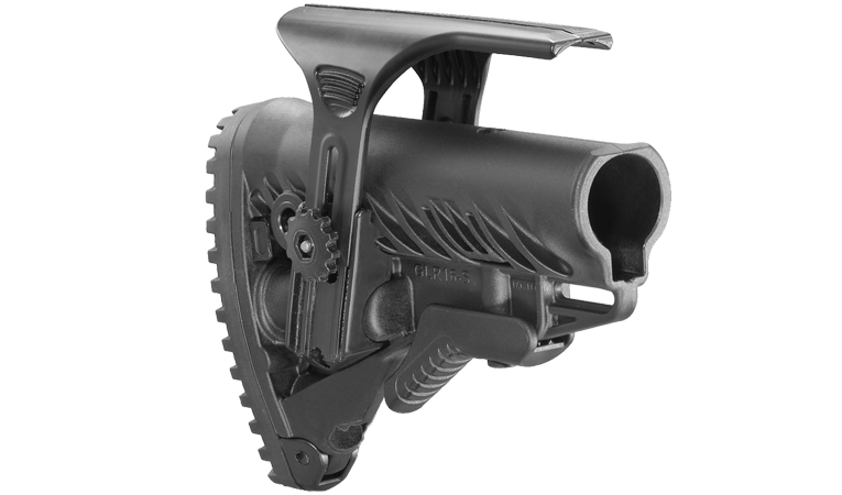 Приклад GLR 16 CP для прикладів серії М4, з регулюються підщечником для щоки, виготовлена з посилених полімерних композиційних матеріалів потилич з еластичної гуми ефективно зм'якшує віддачу. Чотири місця для закріплення антабки (по два з кожної сторони) дозволяє втримувати (переносити) зброя різними способами.
