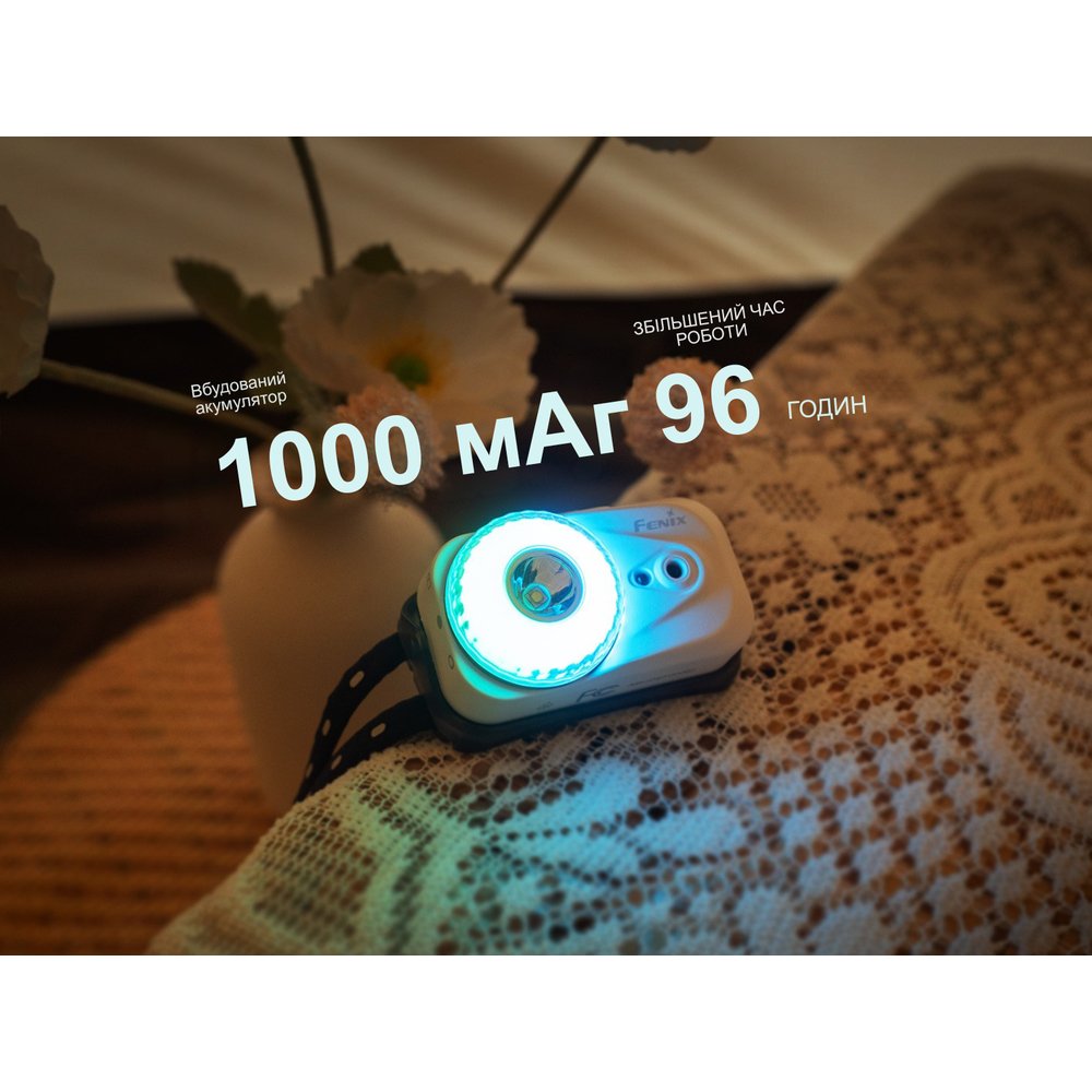 Колірна температура білого світла знаходиться в діапазоні 6500–7500K, що підвищує контрастність і точно виділяє контури освітлюваних об'єктів. Такий промінь актуальний для ситуацій, коли необхідне особливо яскраве підсвічування — від кемпінгу та вечірніх прогулянок до побутових робіт і занять спортом на свіжому повітрі.