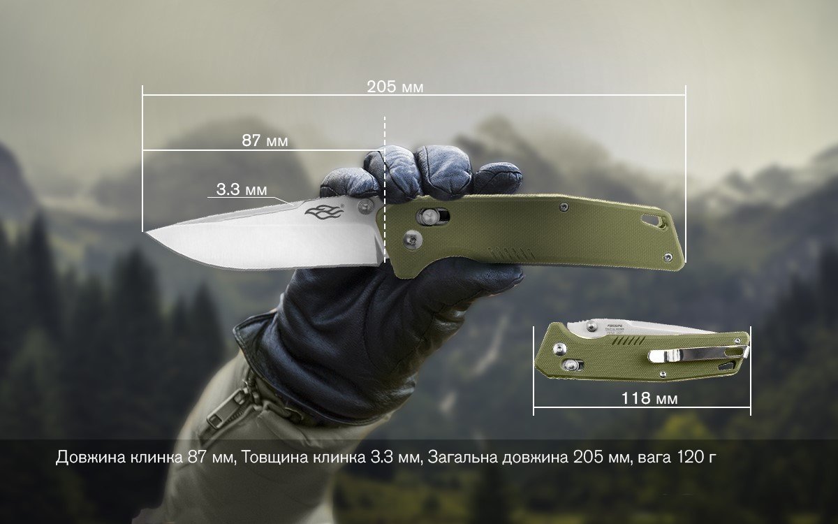 - повна довжина ножа FB7601 — 205 мм, а розмір клинка — 87 мм;