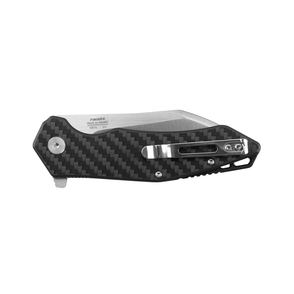 Рукоятка ножа Firebird FH31 CF виготовлена з карбонового композитного матеріалу. Він схожий на пластик, але відрізняється особливою плетеними структурою, більшою міцністю. Карбоновий композит не вбирає воду, легко переносить вплив морозів і тривале перебування на сонці. Він також легко формується, за рахунок чого для ножа Firebird FH31 CF вдалося створити дуже зручний за формою рукоятку. До неї прикріплена сталева кліпса, яку запросто можна переставити на зворотну сторону рукоятки. Також виробники зробили в ручці ножа пару отворів, щоб до нього було легко прикріпити темляк.