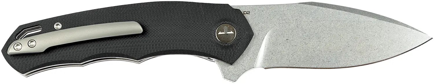 Клинок приводиться в робоче положення легким натисканням на фліпер, а плавність виходу забезпечується системою керамічних шарикопідшипників. Насічки на фліпері гарантують краще зчеплення під час відкривання клинка. Осьовий гвинт відполірований з лицевої сторони і прикрашений логотипом бренду із торцевої. Фіксується клинок у відкритому положенні простим, але надійним замком Liner-Lock. На лайнері розміщений «сухарик», який зменшує тертя клинка об лайнер, що значно продовжить службу фіксуючого механізму.
