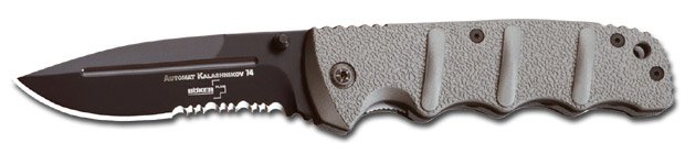 За основу для дизайна этой модели был взят штык-нож автомата АК-74 (это хорошо видно по характерным вертикальным выступам на рукоятке). Клинок длинной 9 сантиметров сделан из высококачественной японской нержавеющей стали AUS-8, обработка - пескоструйная. Легко открывается одной рукой, благодаря шпеньку у основания клинка. Подпальцевые выемки, выступы и текстура алюминиевой рукояти обеспечивают уверенное удержание ножа в любой ситуации