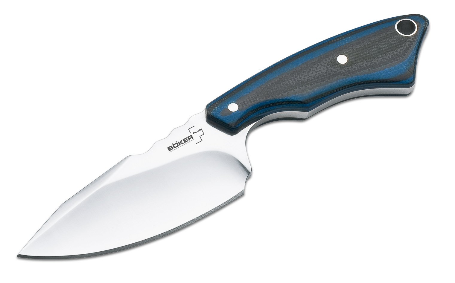 черно-голубыми накладками рукоятки из стеклотекстолита G-10, придало ножу и элегантный вид.