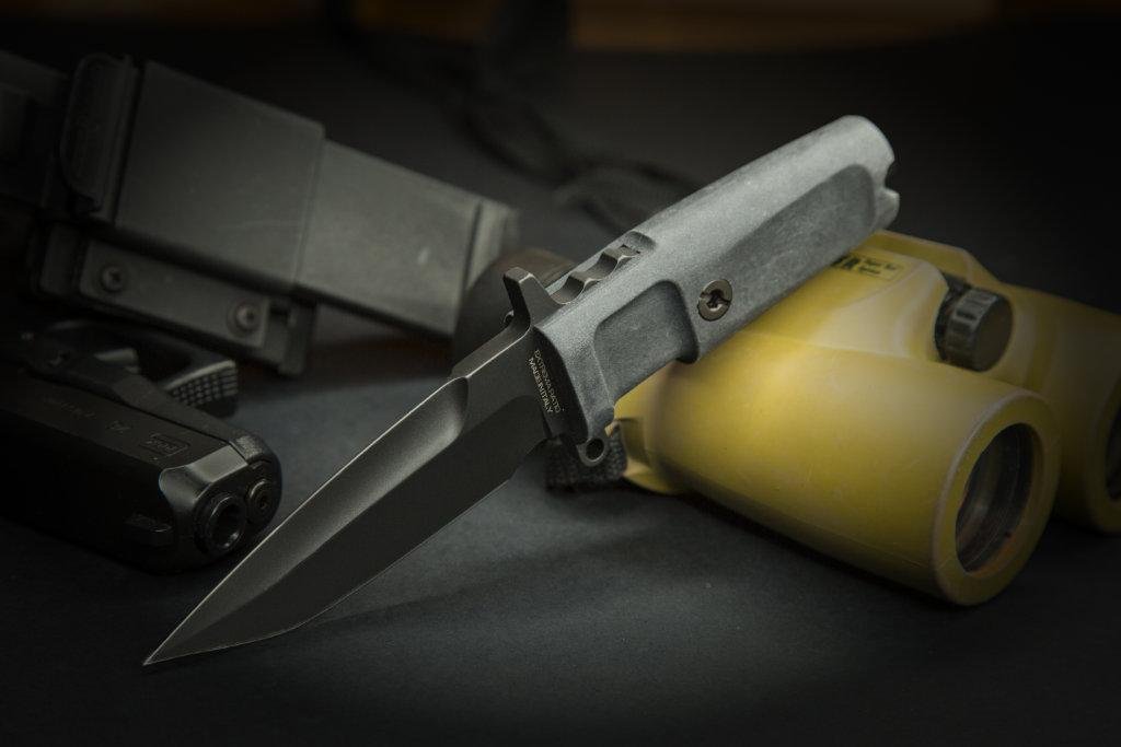 Нож Extrema Ratio Col Moschin был изготовлен на заказ знаменитого 9-го парашютно-десантного полка Col Moschin итальянского спецназа и официально принялся на вооружение в 2002 году. На создание модели Col Moschin дизайнеры вдохновились кинжалами времен Первой Мировой войны, которые использовала итальянская армия. Благодаря современным технологиям и материалам, вышло не просто сохранить, а и улучшить непревзойденные боевые качества ножа. Клинок профиля Tanto Point изготовлен из высококачественной легированной стали марки Böhler N690 твердостью 58 HRC. Данная сталь отличается высокой стойкостью к коррозии, выдерживает ударные и боковые нагрузки, а резальная кромка остается максимально острой продолжительное время. Комбинированная резальная кромка из серейторной частью на 1/3 длины позволяет использовать нож в любых ситуациях, в том числе для вскрытия текстиля. Финишное покрытие Black Oxide MIL-C-13924 наделяет клинок дополнительной защитой от коррозии, предоставляет матовости. Массивная двусторонняя гарда служит для защиты рук и предотвращает соскальзыванию руки на клинок. Также для удобства выполнения трудной работы, за гардой размещенный ряд насечек под большой палец. Для более деликатных задач на пяте клинка размещенный чойл.