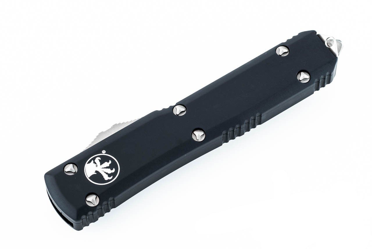 Mictotech Ultratech – линейка выкидных автоматических ножей с усовершенствованным механизмом фронтального выброса клинка (Auto Out-the-Front). Рукоять выполнена из алюминиевого сплава 6061-T6 с твердым анодированием (тип III). На торце рукояти – стеклобой с крепким шариком из закаленной стали. Для более удобного ношения предусмотрена карманная клипса с небольшим отверстием для крепления темляка.