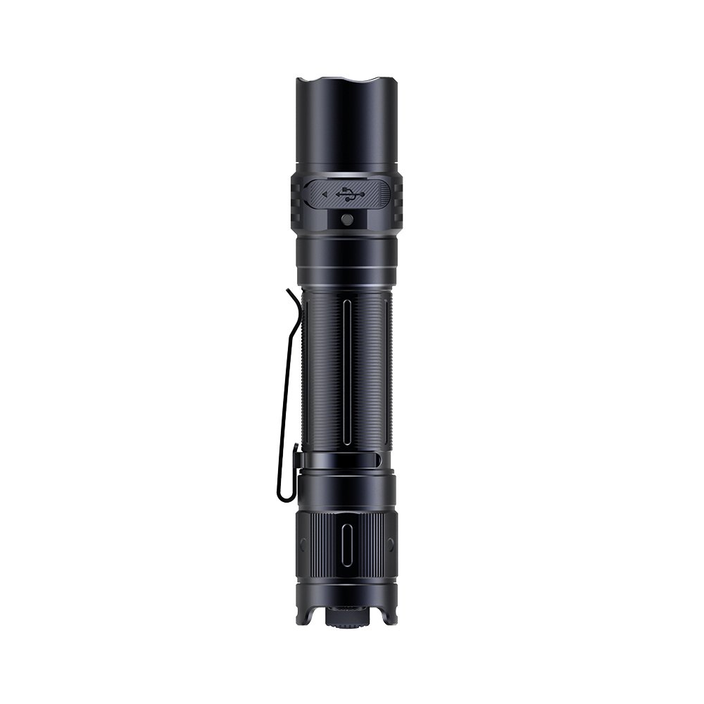 Для максимальної ефективності роботи ліхтаря рекомендується використовувати фірмовий Li-ion акумулятор із форм-фактором 18650 — Fenix ARB-L18 ємністю 3400 мАгод, що входить до базової комплектації. Робоча напруга у пристрої варіюється в межах від 2.85 В до 6 В. Елемент живлення поміщається до батарейного відсіку, який захищений від попадання вологи і засмічень завдяки ущільнювальному кільцю. Зарядний порт USB Type-C знаходиться в головній частині корпусу і дозволяє заповнити ємність акумулятора без необхідності його попереднього виймання з батарейного відсіку. Заряджання акумулятора Fenix ARB-L18 до 100% займає близько 3-х годин. Порт захищений силіконовою заглушкою, яка запобігає контакту з вологою під час експлуатації моделі у складних погодних умовах.