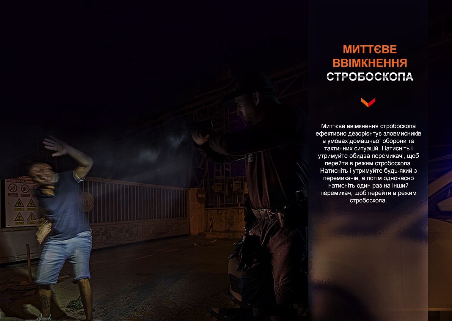 - Увімкнення режиму Стробоскоп: затискання одного перемикача + клік другого перемикача.